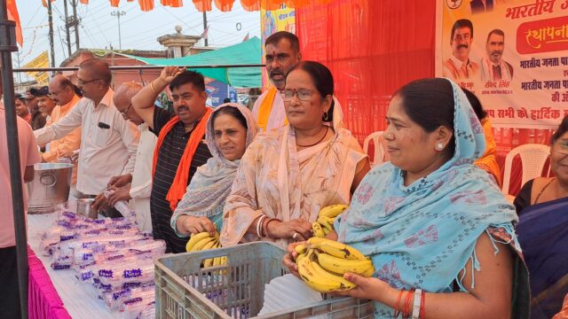 खुर्सीपार में भाजपा का स्थापना दिवस शरबत-केले बांटकर मनाया गया , बड़ी संख्या में जुटे कार्यकर्ता