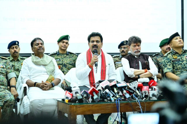 जगदलपुर में आयोजित प्रेस वार्ता के दौरान उपमुख्यमंत्री एवं गृह मंत्री श्री विजय शर्मा ने दृढ़ विश्वास के साथ कहा कि राज्य सरकार, केंद्रीय एजेंसियों और सुरक्षा बलों के समन्वित एवं सतत प्रयासों के परिणामस्वरूप छत्तीसगढ़ 31 मार्च 2026 तक सशस्त्र नक्सलवाद से पूर्णतः मुक्त हो जाएगा। उन्होंने कहा कि यह केवल एक प्रशासनिक उपलब्धि नहीं, बल्कि बस्तर और समूचे छत्तीसगढ़ के सामाजिक, आर्थिक और मानवीय पुनर्जागरण की दिशा में एक ऐतिहासिक परिवर्तन है। इस महत्वपूर्ण अवसर पर नारायणपुर विधायक एवं मंत्री श्री केदार कश्यप, जगदलपुर विधायक श्री किरण सिंहदेव, डीजीपी श्री अरुण देव गौतम, पुलिस महानिदेशक एंटी नक्सल ऑपरेशन श्री विवेकानंद, नक्सल उन्मूलन से जुड़े वरिष्ठ अधिकारी, एडीजी सीआरपीएफ, बस्तर कमिश्नर, आईजी सुंदरराज पी., बीजापुर के पुलिस अधीक्षक सहित विभिन्न केंद्रीय एवं राज्य सुरक्षा बलों के अधिकारी उपस्थित रहे।