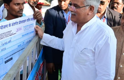 मुख्यमंत्री श्री भूपेश बघेल डोंगरगढ़ विधानसभा क्षेत्र के ग्राम बेलगांव में आयोजित भेंट-मुलाकात कार्यक्रम में विभागीय योजनाओं के तहत हितग्राहियों को सामग्री और सहायता राशि का चेक वितरण किया। जिसमें महिला बाल विकास के 20, मछली पालन विभाग के दो, कृषि विभाग के चार, समाज कल्याण विभाग के दो और श्रम विभाग की योजना के तहत 4 श्रमिकों को 20-20 हजार रुपए का चेक वितरण किया।