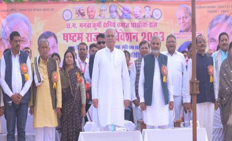 मुख्यमंत्री श्री भूपेश बघेल आज रायपुर जिले के तिल्दा विकासखंड के अंतर्गत ग्राम तरपोंगी में आयोजित धरसींवा राज कुर्मी क्षत्रिय समाज के 6वें राज अधिवेशन में शामिल हुए। उन्होंने समाज के पूर्वजों को श्रद्धासुमन अर्पित कर सम्मेलन का शुभारंभ किया।