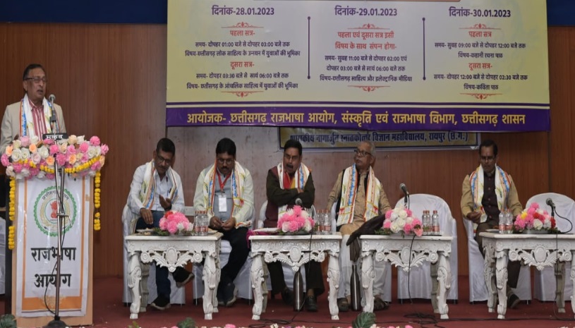 राज्य स्तरीय युवा महोत्सव और छत्तीसगढ़ लोक साहित्य सम्मेलन के दूसरे दिन आज रविवार को राजधानी रायपुर के साइंस कॉलेज परिसर के ऑडिटोरियम में छत्तीसगढ़ साहित्य और इलेक्ट्रॉनिक मीडिया विषय पर दो सत्रों में छत्तीसगढ़ लोक साहित्य सम्मेलन सम्पन्न हुआ। सत्र का शुभारंभ दीप प्रज्ज्वलन और राजगीत से हुआ। इस अवसर पर बेमेतरा से आये श्री रामानंद त्रिपाठी की कविता को श्रोताओं ने खूब सराहा। इस मौके पर लेखक श्री कृष्ण कुमार पाटिल की पुस्तक जय छत्तीसगढ़ दाई, डॉ. गीतेश अमरोही की पुस्तक कौशल्या और छत्तीसगढ़ी उपन्यास सोन कमल का विमोचन किया गया।