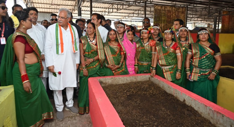 मुख्यमंत्री ने गौठान में ही दोना, पत्तल व्यवसाय से जुड़ी गोवर्धन स्व-सहायता समूह की महिला सदस्यों से उनकी आमदनी पर चर्चा की।