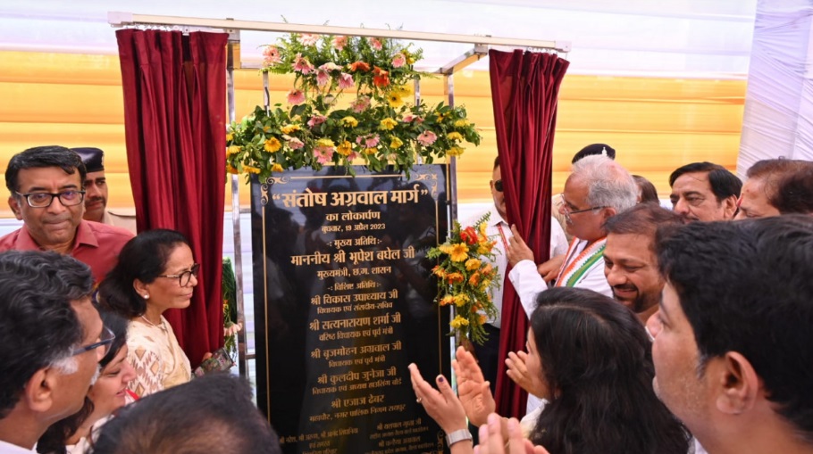 मुख्यमंत्री श्री भूपेश बघेल ने भेंट-मुलाकात अभियान के तहत आज कोटा गुढ़ियारी सड़क मार्ग का नामकरण पूर्व महापौर स्वर्गीय श्री संतोष अग्रवाल के नाम पर किया