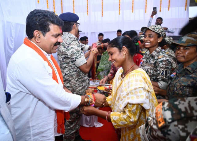 रक्षाबंधन के पावन अवसर पर उपमुख्यमंत्री श्री विजय शर्मा ने सुकमा में एक भावनात्मक और ऐतिहासिक कार्यक्रम में भाग लिया। नक्सल पुनर्वास केंद्र सुकमा में आत्मसमर्पित महिला नक्सलियों और बस्तर फाइटर के दीदियों ने उपमुख्यमंत्री को राखी बांधकर भाईचारे, विश्वास और शांति का सशक्त संदेश दिया। कार्यक्रम के दौरान उपमुख्यमंत्री श्री शर्मा ने कहा कि विगत माह जब मैं सुकमा आया था तो मैंने पुनर्वास केंद्र की बहनों से वादा किया था कि रक्षाबंधन का पर्व आपके साथ मनाऊँगा। आज रक्षाबंधन के पावन अवसर पर मेरा यह वादा पूरा हुआ। सुकमा में रक्षाबंधन का यह अवसर केवल एक त्योहार नहीं, बल्कि सामाजिक जुड़ाव और स्थायी शांति का प्रतीक है। आप सभी को मैं यह विश्वास दिलाता हूँ कि जब तक आपका भाई है आपको चिंता करने या डरने की कोई बात नहीं है। आप अपने परिचितों को भी बताइए कि उधर कुछ नई रखा है पुनर्वास करें और समाज की मुख्य धारा में जुड़ें। आपके लिए प्रशिक्षण, खेल, मूवी, सांस्कृतिक कार्यक्रम आदि की व्यवस्था की जाएगी। आप सबके संपूर्ण व्यवस्थापन की जिम्मेदारी हमारी है। इसके साथ ही आप सभी को जल्द ही रायपुर भ्रमण में लेकर जाएँगे। कार्यक्रम के दौरान उपमुख्यमंत्री श्री विजय शर्मा ने आत्मसमर्पित माओवादियों से बातचीत की और कहा की आपका कोई सगा संबंधी किसी जेल में बंद है तो हमें बताना हम आपको उनसे मिलवाने की सम्पूर्ण व्यवस्था करेंगे।