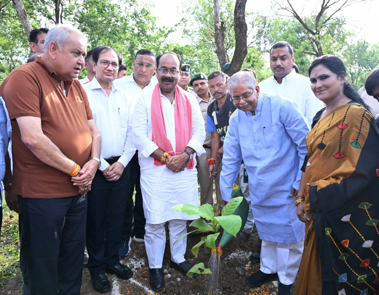 उप मुख्यमंत्री श्री अरुण साव आज बिलासपुर के वन चेतना केन्द्र सकरी में वन महोत्सव में शामिल हुए। उन्होंने इस अवसर पर ‘एक पेड़ मां के नाम’ अभियान के तहत पौधा लगाया और लोगों से अधिक से अधिक संख्या में पौधरोपण करने की अपील की। विधायक सर्वश्री धरमलाल कौशिक, धर्मजीत सिंह और सुशांत शुक्ला, महापौर श्रीमती पूजा विधानी तथा जिला पंचायत के अध्यक्ष श्री राजेश सूर्यवंशी भी वन महोत्सव में शामिल हुए।