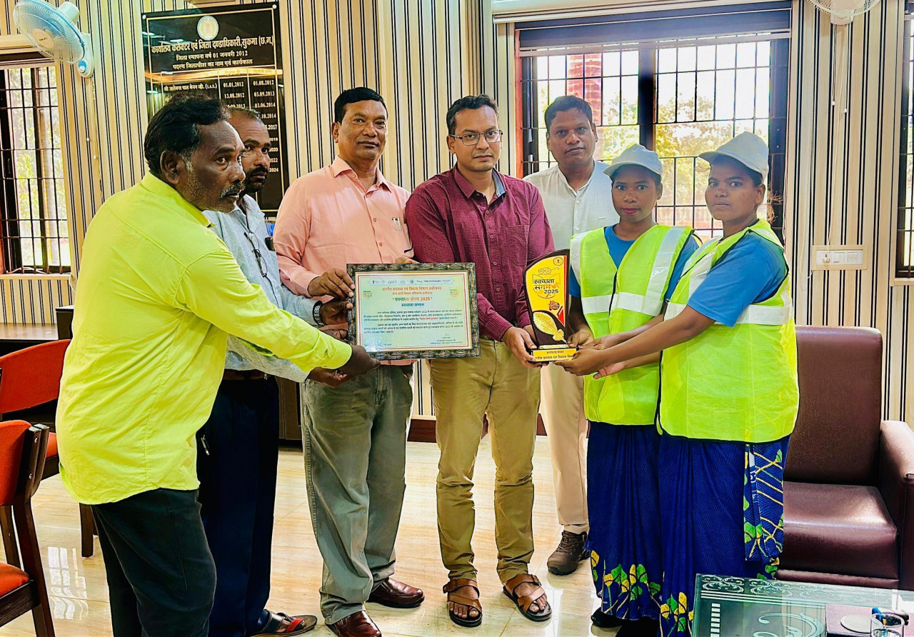स्वच्छता संगम 2025 के भव्य आयोजन में मुख्यमंत्री श्री विष्णु देव साय एवं उपमुख्यमंत्री तथा नगरीय प्रशासन मंत्री श्री अरुण साव ने सुकमा नगर पालिका परिषद की सराहना करते हुए प्रशस्ति-पत्र प्रदान किया। परिषद की ओर से मुख्य नगर पालिका अधिकारी श्री पी.आर. कोर्राम, नपा उपाध्यक्ष श्रीमती भुवनेश्वरी यादव तथा स्वच्छता दीदियों ने मंच पर पहुंचकर यह सम्मान ग्रहण किया। यह अवसर सुकमा जिले के लिए गर्व और गौरव का प्रतीक बन गया।