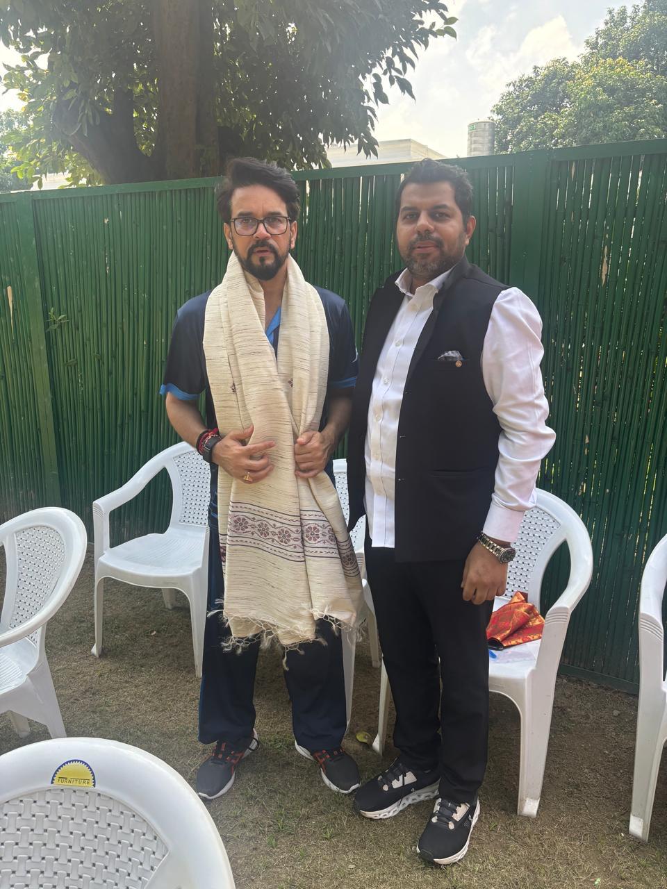भिलाई नगर। भारतीय जनता युवा मोर्चा छत्तीसगढ़ प्रदेश कार्यसमिति सदस्य मनीष पाण्डेय ने आज पूर्व केंद्रीय मंत्री अनुराग ठाकुर से आत्मीय भेंट की। अपने दिल्ली प्रवास के दौरान मनीष पाण्डेय ने अनुराग ठाकुर से मुलाकात कर उनका अभिनंदन किया एवं युवाओं से जुड़े विभिन्न विषयों पर उनसे चर्चा की।