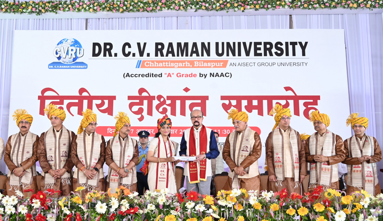 राज्यपाल श्री रमेन डेका कोटा स्थित डॉ. सीवी रमन विश्वविद्यालय के दूसरे दीक्षांत समारोह में शामिल हुए। उन्होंने 195 विद्यार्थियों को पीएचडी को उपाधि और 189 विद्यार्थियों को गोल्ड मेडल प्रदान किया। उन्होंने इस दौरान विश्वविद्यालय द्वारा प्रकाशित दीक्षांत स्मारिका सहित अन्य प्रकाशनों का विमोचन किया। अपने प्रेरणादायक उद्बोधन में उन्होंने विद्यार्थियों को समर्पण, अनुशासन और निरंतर परिश्रम को जीवन का मूल मंत्र बताते हुए सफलता की दिशा में आगे बढ़ने के लिए प्रेरित किया।