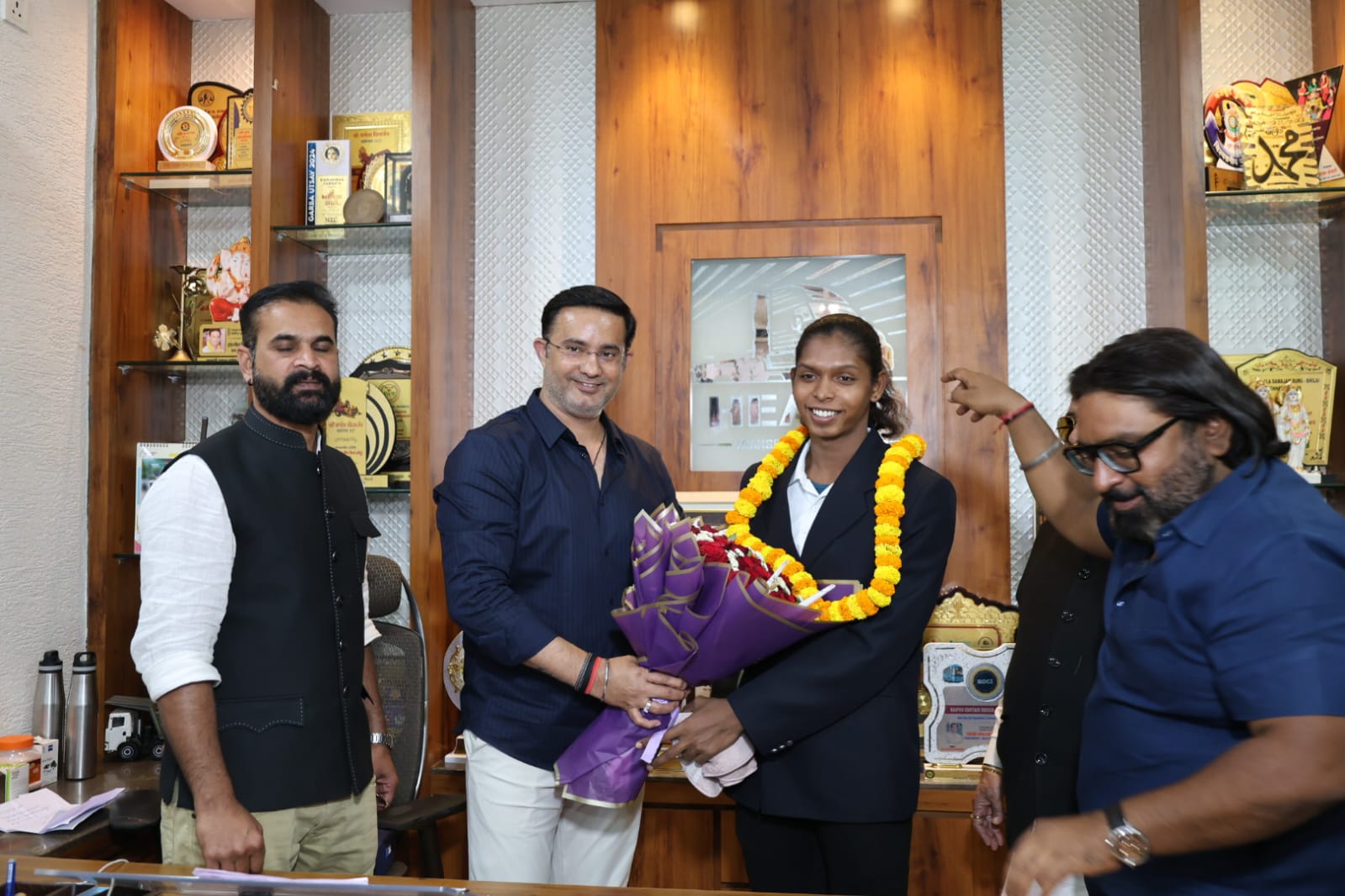 भिलाई /कोलंबो (श्रीलंका) में आयोजित वर्ल्ड पावरलिफ्टिंग चैंपियनशिप में 77 वेट क्लास के मुकाबले में भिलाई के गौरव देवेंद्र वर्मा ने बेंच प्रेस में गोल्ड मेडल जीतते हुए ओवरऑल स्ट्रॉन्ग मैन का खिताब हासिल कर भिलाई ही नहीं, पूरे भारत का नाम विश्व पटल पर रोशन किया है। आज एच.टी.सी. कार्यालय में सर्व समाज कल्याण समिति के अध्यक्ष श्री इंद्रजीत सिंह ‘छोटू’ ने देवेंद्र वर्मा का सम्मान कर उनके उज्ज्वल भविष्य के लिए शुभकामनाएं दीं। उन्होंने इंडिया टीम के कोच श्री ऊदल कुमार वाल्मीकि एवं देवेंद्र के पर्सनल कोच श्रीनिवास साहू जी को भी इस ऐतिहासिक उपलब्धि के लिए हार्दिक बधाई प्रेषित की। इस अवसर पर श्री इंद्रजीत सिंह ‘छोटू’ ने कहा कि होनहार खिलाड़ियों को राष्ट्रीय या अंतरराष्ट्रीय स्तर पर जिस भी मंच पर उनकी आवश्यकता होगी, वे सदैव सहयोग के लिए तत्पर रहेंगे। संसाधनों की कमी के कारण किसी भी योग्य खिलाड़ी को अपना खेल नहीं छोड़ना पड़ेगा। इस दौरान सर्व समाज कल्याण समिति के श्री मलकीत सिंह, श्री अनिल चौधरी, श्री जोगा राव,निर्मल सिंह निम्मे, साजिद अंसारी, इंद्रजीत सिंह चिंटू,रमन राव, शाहनवाज कुरैशी, डॉ. हरजिंदर सिंह तथा अन्य समिति सदस्य एवं पदाधिकारी उपस्थित रहे।