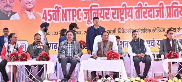 उल्लेखनीय है कि 45वीं एनटीपीसी जूनियर राष्ट्रीय तीरंदाजी प्रतियोगिता का आयोजन छत्तीसगढ़ प्रदेश आरचरी एसोसिएशन एवं छत्तीसगढ़ खेल एवं युवा कल्याण विभाग के तत्वावधान में किया जा रहा है। यह प्रतियोगिता 22 से 30 दिसंबर तक आयोजित होगी। प्रतियोगिता में 30 राज्यों और केंद्र शासित प्रदेशों से लगभग 500 खिलाड़ी हिस्सा ले रहे है। कार्यक्रम में छत्तीसगढ़ ओलंपिक संघ के महासचिव श्री विक्रम सिसोदिया, छत्तीसगढ़ प्रदेश आर्चरी एसोसिएशन के पूर्व अध्यक्ष एवं राष्ट्रीय उपाध्यक्ष श्री कैलाश मोरारका, महासचिव श्री आयुष मोरारका, श्री ईश्वर प्रसाद अग्रवाल सहित विभिन्न प्रदेशों से आए खिलाड़ी, कोच,मैनेजर तथा गणमान्यजन व खेलप्रेमी बड़ी संख्या में उपस्थित थे।
