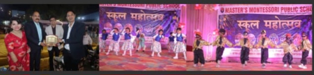भिलाई /मास्टर्स मॉर्टसरी पब्लिक स्कूल में वार्षिकोत्सव में बच्चों ने मन मोहक प्रस्तुति देकर सबका मन जीत लिया। इस कार्यक्रम में मुख्य अतिथि के रूप में नरेन्द्र सिकेबाल सुपरिटेंडेंट ऑफ़ पुलिस (CID) विशेष अतिथि के रूप में उमेश सिंह (समाजसेवी), डाक्टर श्री मती पूजा सियाल, रामा कोचिंग के एकेडमिक डायरेक्टर प्रकाश पालीवाल, एबीएस फाउंडेशन के डायरेक्टर सी.ए. भूषण चिपड़े भिलाई साईं प्रयास एजुकेशन सोसायटी के सदस्य अभिषेक राय, प्रवीण उपाध्याय, स्कूल के डायरेक्टर श्री मती मिनाक्षी सिंह व हेड मिस्ट्रेस दामिनी वर्मा तथा शिक्षा जगत से जुड़े हुए अनेक गणमान्स महानुभाव प्रमुख रूप से उपस्थित रहे। बच्चो के द्वारा इस कार्यक्रम में बहुत ही मनमोहक प्रस्तुति दिया गया जिसका मुख्य विषय पारिवारिक रिस्मों से था, जिसमें लगभग कुल 90 छात्रो ने अलग-अलग कार्यक्रमों में हिस्सा लेकर नृत्य व कहानी के माध्यम से भारतीय संस्कृति के बारे में रोचक जानकारी दी। वहीं K.G- II, की एक छात्रा मन्नत कौर ने गणेश जी भजन पर प्रस्तुति देकर सबको ध्यानयुक्त कर दी, कुछ बच्चों ने हास्स नाटक की प्रस्तुति देकर सबका मन मोह लिये।
