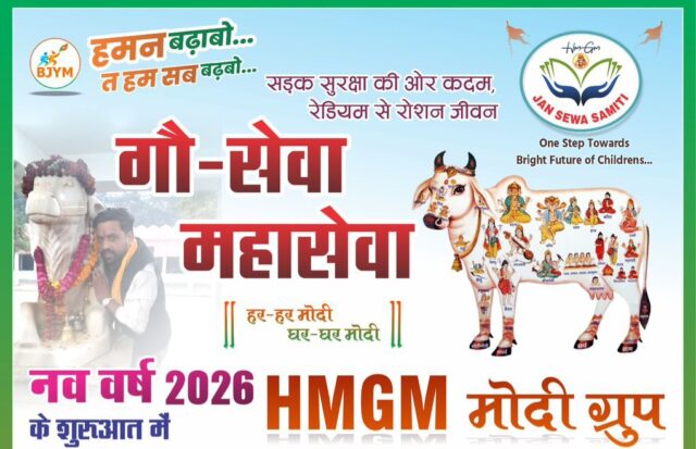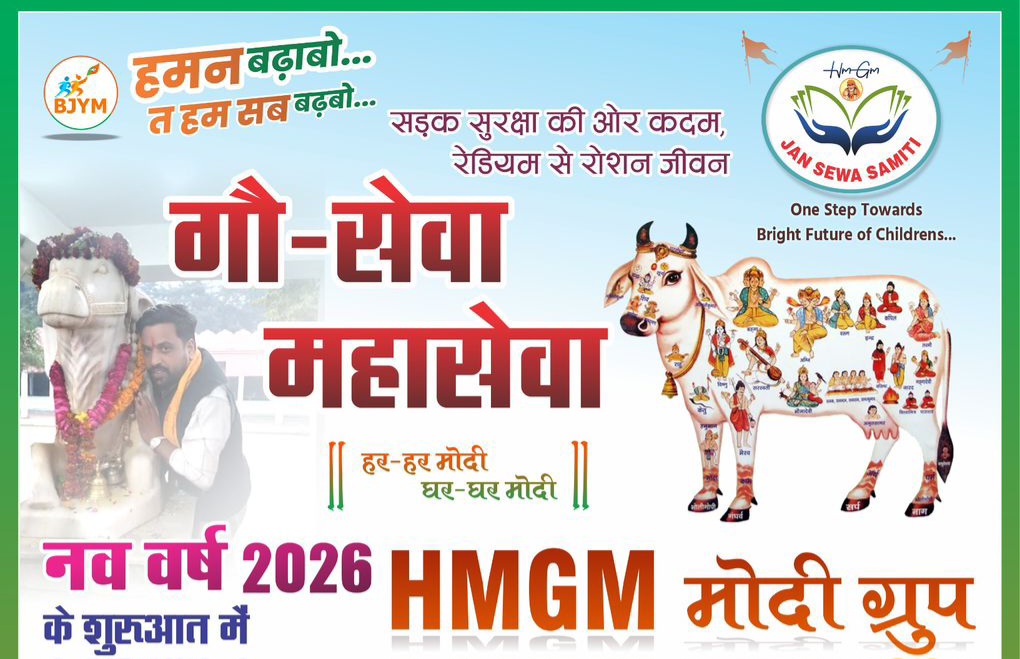 भिलाई /गौ-सेवा महासेवा”नव वर्ष”2026 के शुरुआत में HMGM मोदी ग्रुप द्वारारात में गौ-माताओं को वाहन चालक द्वारा ना देख पाने से कई प्रकार की भीषण दुर्घटना होने की संभावना बनी रहती है।इस हेतु गौ माता एवं वाहन चालक दोनों सुरक्षित रहे इसलिए सड़को पर उपस्थित गौ-माताओं को रेडियम पट्टा लगाया जायेगा।