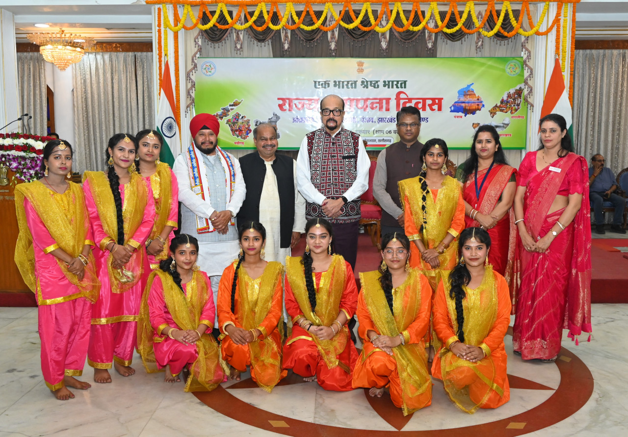केन्द्र सरकार के “एक भारत-श्रेष्ठ भारत” कार्यक्रम के तहत विविधता में एकता की भावना को बढ़ावा देने के लिए सभी राज्य एक दूसरे का स्थापना दिवस मनाते है। इसी कड़ी में आज लोकभवन के छत्तीसगढ़ मण्डपम में आंध्रप्रदेश, चंडीगढ़, हरियाणा, पंजाब, झारखंड और नागालैण्ड राज्यों एवं केंद्रशासित प्रदेशों का स्थापना दिवस हर्षोल्लास के साथ मनाया गया।