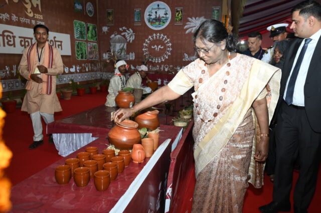 राष्ट्रपति श्रीमती मुर्मु ने बस्तर पंडुम को आदिवासी विरासत को संजोने और उसे पूरी दुनिया तक पहुंचाने का सशक्त माध्यम बताया। उन्होंने एक-एक कर ढोकरा हस्तशिल्प कला, टेराकोटा, वुड कार्विंग, सीसल कला, बांस कला, लौह शिल्प, जनजातीय वेश-भूषा एवं आभूषण, तुम्बा कला, बस्तर की जनजातीय चित्रकला, स्थानीय व्यंजन तथा लोक चित्रों पर आधारित आकर्षक प्रदर्शनी का अवलोकन किया और इसकी सराहना की।